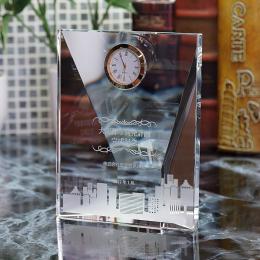 クリスタル製の時計付き盾をまとめたカテゴリ。各種記念品や表彰などの記念品向けにレーザー刻印やサンドブラスト加工に対応しています。