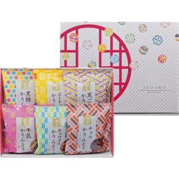 サクサクッとした食感に仕上げたハチミツ入り黒糖かりんとう、ピーナッツの香ばしさと甘みが調和したピーナッツかりんとう、牛乳を生地に練り込んだ牛乳かりんとう、香ばしい黒ごまで仕上げた黒ごまかりんとう、チョコレートを生地にたっぷりとねりこみカリっと軽い食感に仕上げたチョコかりんとう、キャラメルをたっぷりとかけしっとりと仕上げたキャラメルかりんとう。6種類のフレーバーを楽しめるかりんとう詰合わせです。