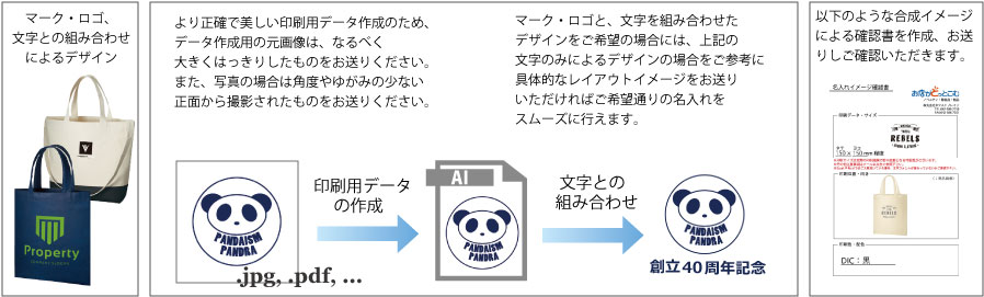 イラストレーターによるデザインデータが作成可能な場合は、そちらをお送りいただき印刷に使用いたします。