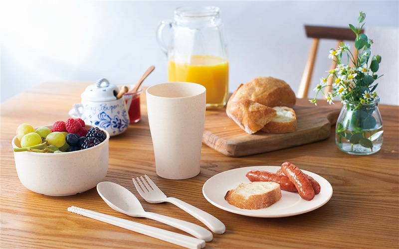 麦の穂を落とした後の茎を再利用することで、廃棄物や合成樹脂の使用量を削減しています。軽くて割れないのでお子様がいても安心。カトラリーまでセットになったナチュラルギフトセットです。※天然素材配合のため、色に多少のばらつきが生じます。 ※電子レンジ・オーブン使用不可