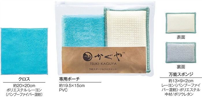 万能スポンジ/レーヨン(バンブーファイバー混紡)・ポリエステル 中材/ポリウレタン クロス/ポリエステル・レーヨン(バンブーファイバー混紡) 専用ポーチ/PVC