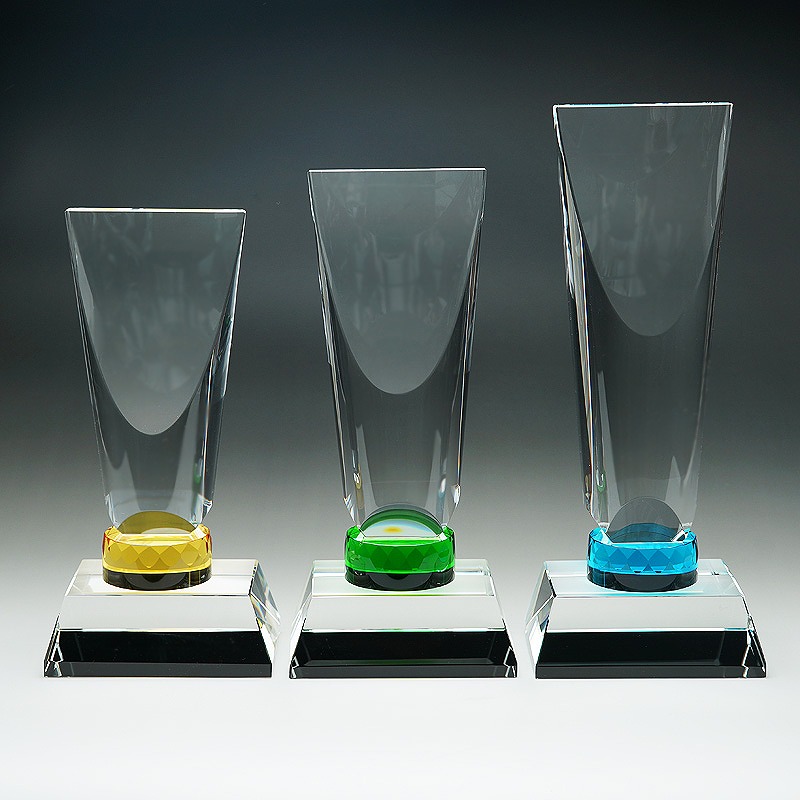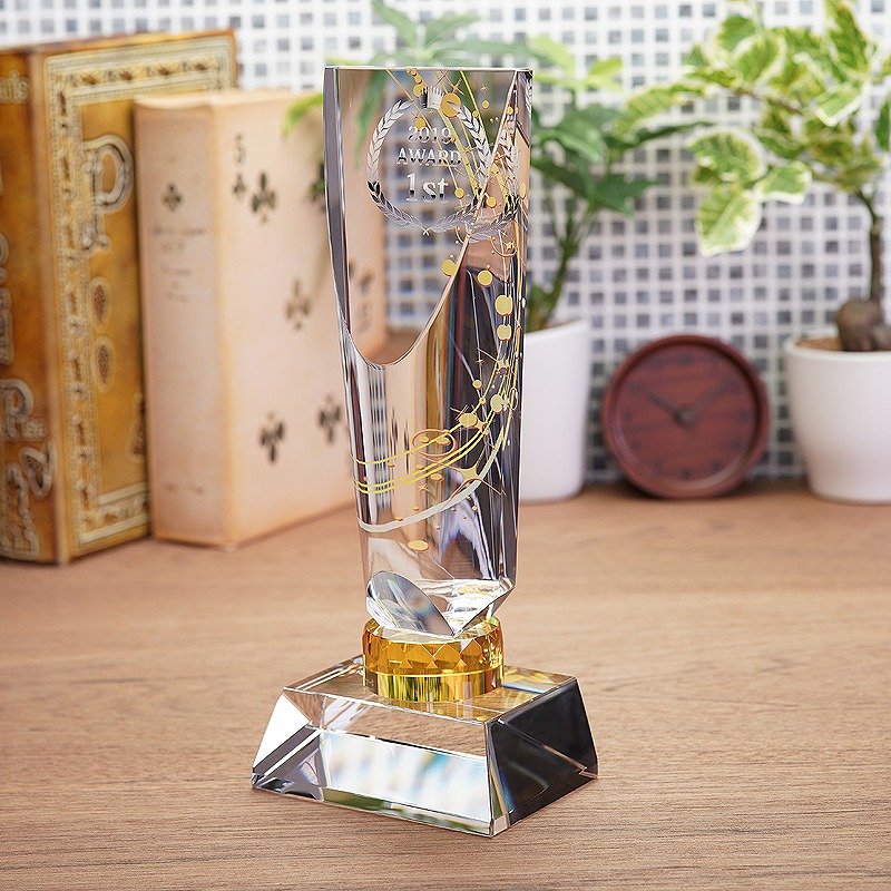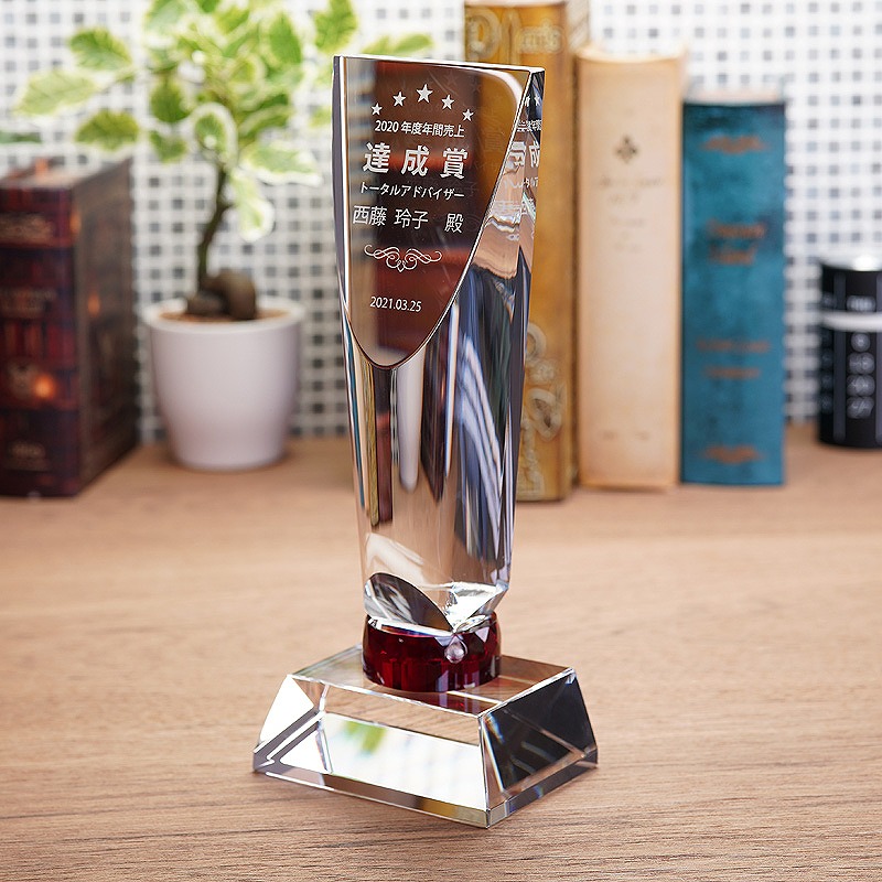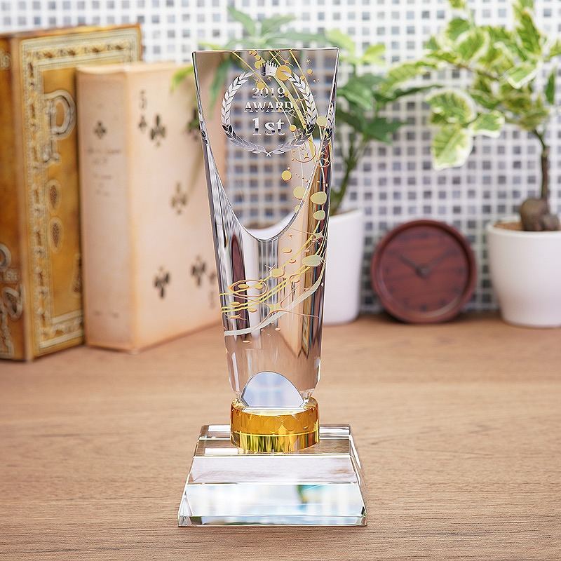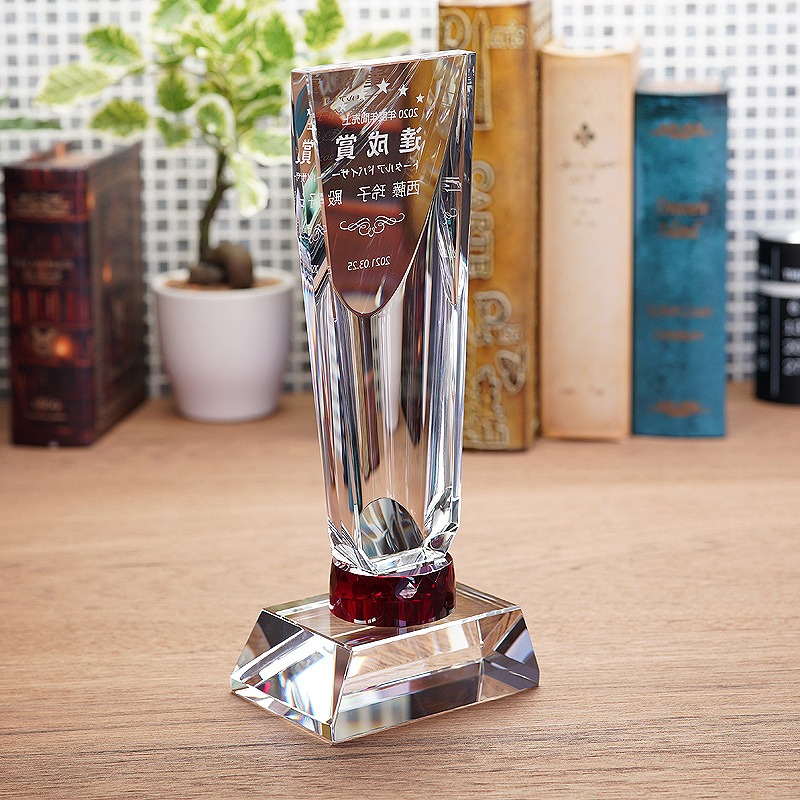 クリスタル製のトロフィーをまとめたカテゴリ。各種記念品や表彰などの記念品向けにレーザー刻印やサンドブラスト加工に対応しています。