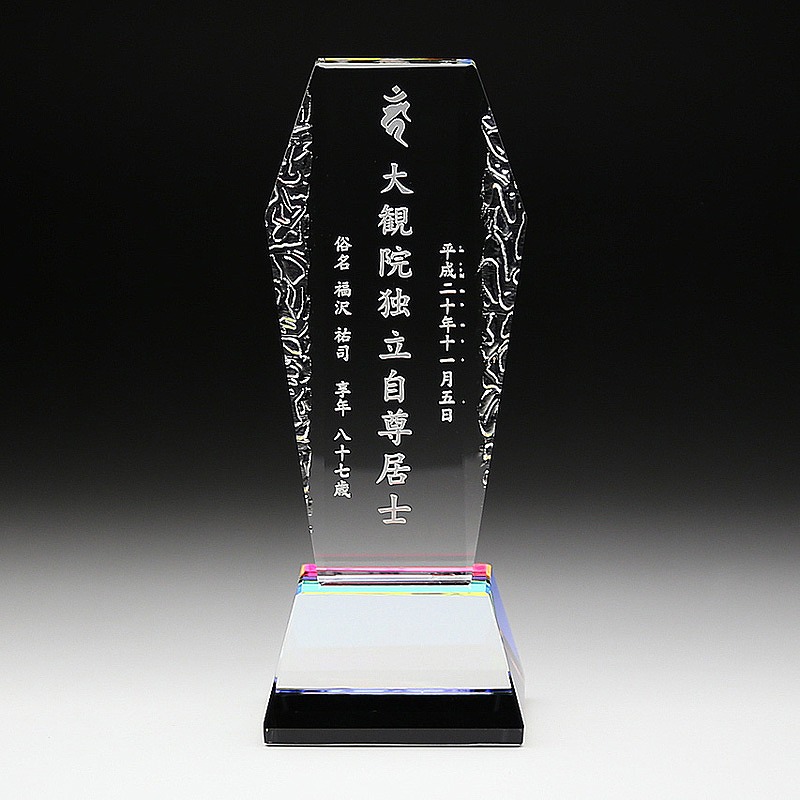 クリスタル製の位牌や仏器・仏具をまとめたカテゴリ。サンドブラスト加工にも対応しています。