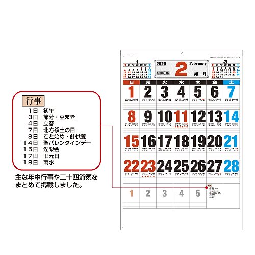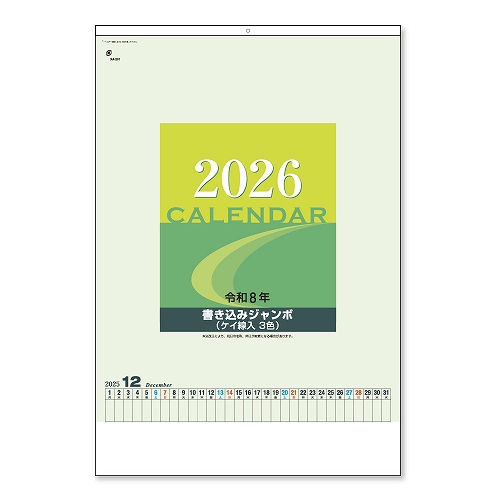 B2書込みジャンボ 壁掛カレンダー 2026 [名入れ代込]
