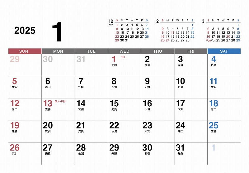 メモ欄:あり、前後月:あり、六曜:あり