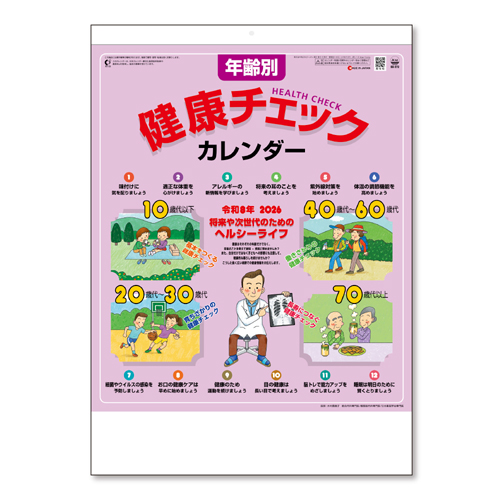 ”販促品 ノベルティ グッズ” 『年齢別健康チェック 壁掛カレンダー 2026 [名入れ代込]』