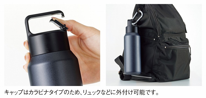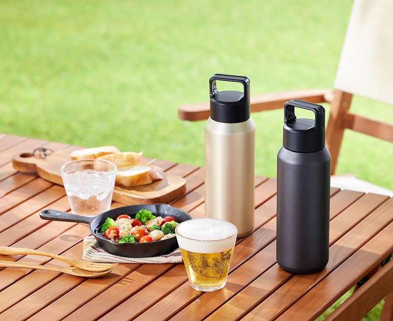 1蓋部分のガス抜き構造により、ビール、炭酸水などを冷たいまま持ち運び可能。