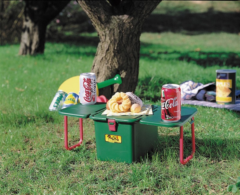 運動会やピクニック、海水浴などのレジャー場面で活躍します。脚をテーブルの裏にコンパクトに収納できます。350mlの缶が立てて2列で6本スッキリセットできます。