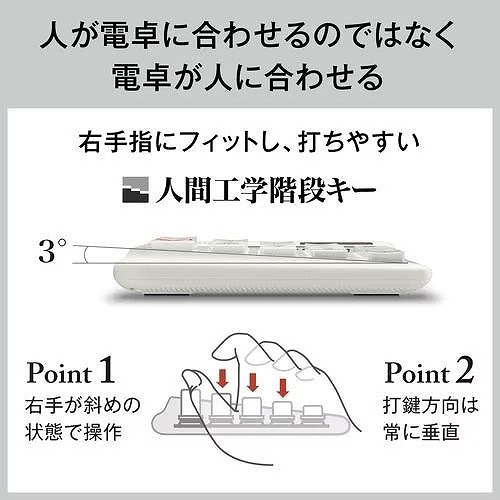 ■素早い入力に対応する早打ち機能 ■打ちやすさを追求したキー配列・形状 ■抜群のタッチ感と数字が消えない2色成型樹脂キー