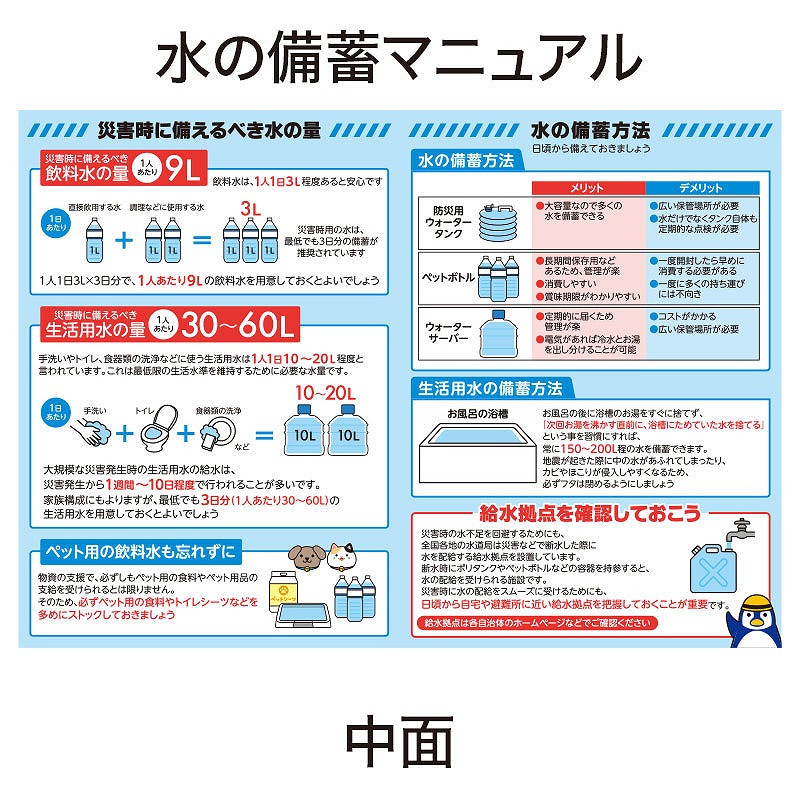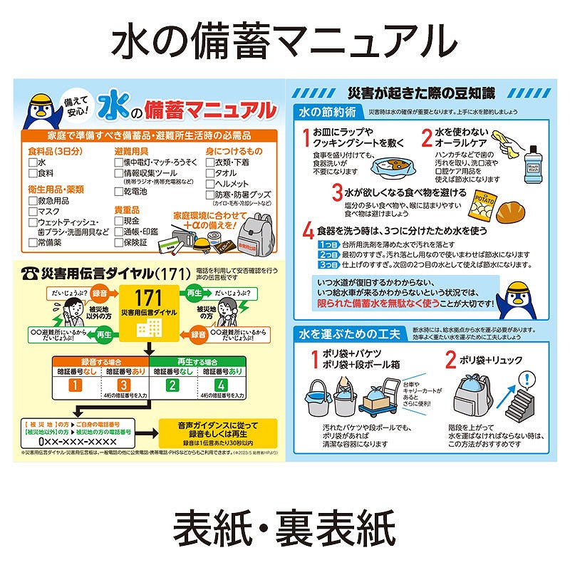 災害時の水の備蓄方法をはじめ、役立つ豆知識が満載です。