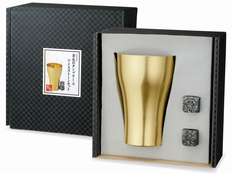 ”ロゴ、名入れ・ノベルティ、物販に!” 『金色のタンブラー&アイスストーンセット』