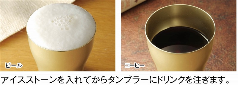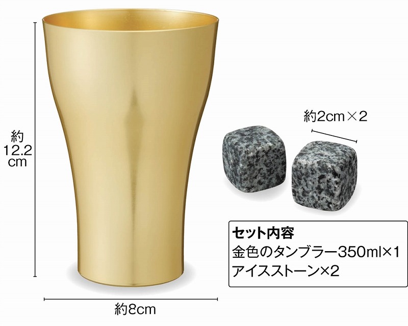 商品動画をご用意しております。 <セット内容> 金色のタンブラー350ml×1 アイスストーン×2