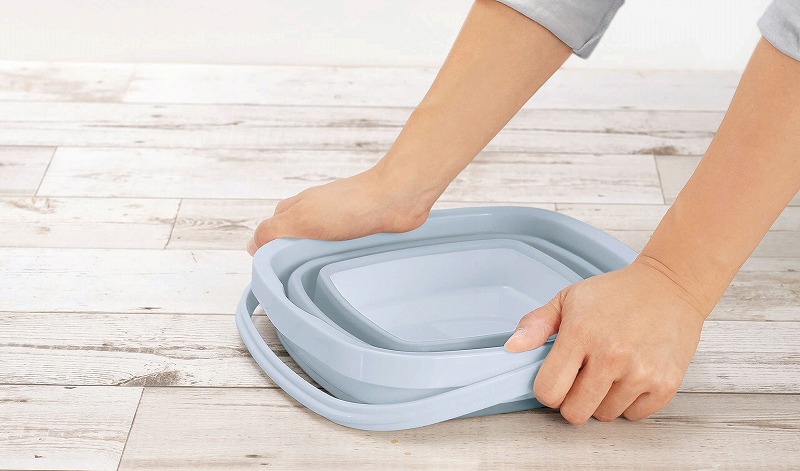 お掃除にもアウトドアにも活躍!折りたためるので隙間収納もOK。靴洗い、ガーデニング、掃除道具入れに。壁掛けもOK!