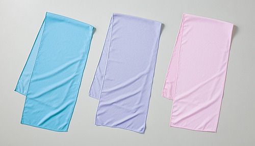 熱中症対策に!水に濡らして、絞る・振ると生地温度が下がり、ひんやり気持ちいいタオルです。