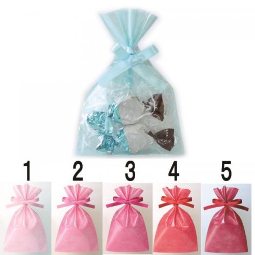 リボンのセットが簡単に行えるように、クリアバッグを二つ折りのリボンがあらかじめとおっているタイプです。