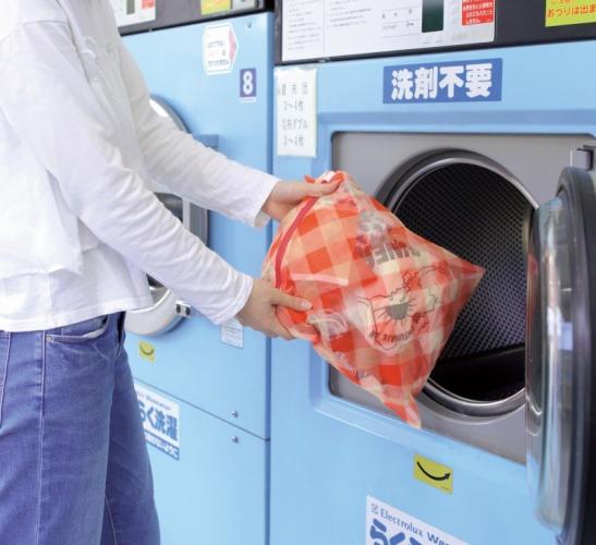 貯めた洗濯物と一緒に洗ってポーチも清潔、コンパクトになり持ち運びにも便利な洗濯ネット