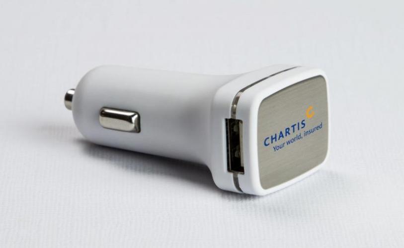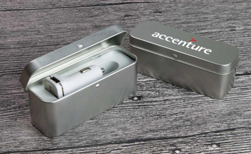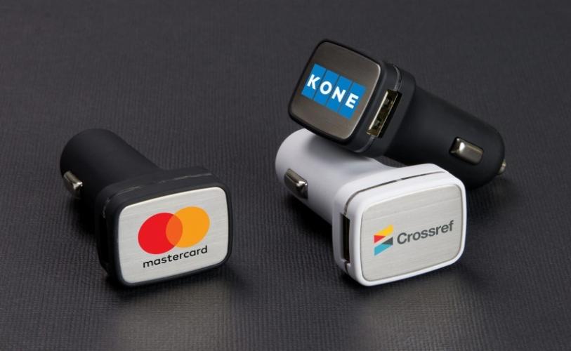 車用シガーソケットUSBチャージャー『ジップ』は同時に2つのデバイスの充電が可能。なめらかでスタイリッシュなメタリックボディがプロモーションに効果的。御社のロゴや、ブランドメッセージ、URLなどをスクリーン印刷およびレーザー彫刻にて刻印できます。