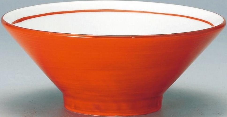 美濃焼 切立高台20cm丼ぶり 朱手巻_ (個箱・名入れ代は、別途見積)