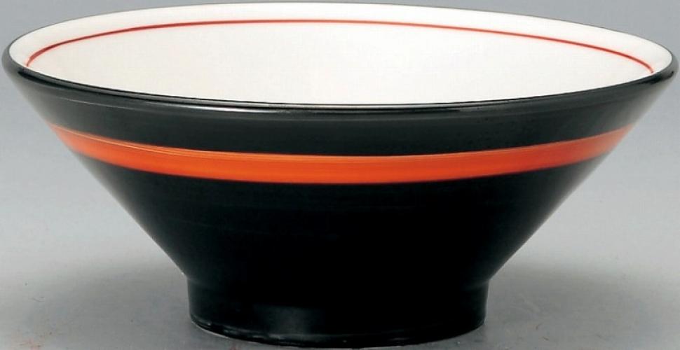 美濃焼 切立高台20cm丼ぶり 黒手巻赤帯_ (個箱・名入れ代は、別途見積)