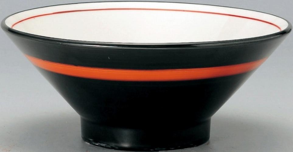 美濃焼 切立高台21cm丼ぶり 黒手巻赤帯_ (個箱・名入れ代は、別途見積)