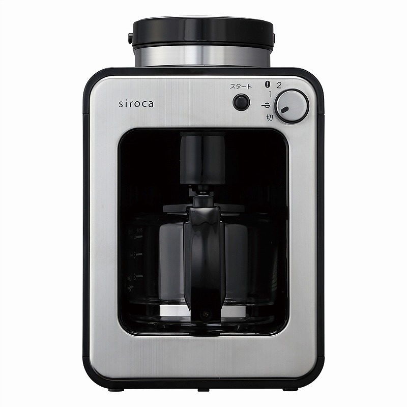 挽きたての豆からコーヒーが楽しめる。「ミル内蔵」「蒸らし機能付き」だから、全自動でドリップまでできる上に、抽出時の香りや、味もしっかり楽しめる。ホットコーヒーは最大4杯まで、マグカップは2杯、アイスコーヒーは4杯までOK。粉からでもコーヒーが淹れられる、コーヒー豆・粉の両対応。サーバーはガラスなのでコーヒーの抽出量が一目でわかり便利。