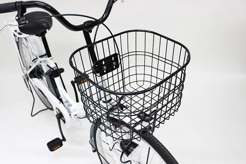 アシスト機能・シングルギア・ 折畳みフレーム・カゴ・リアキャリア・バッテリー連動電源スイッチ・LEDライト(バッテリー電源連動)・サークルキー(本体/バッテリー共通キー)