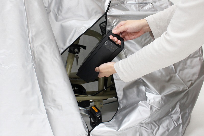 持ち手3本ファスナーでバッテリーの着脱も簡単。