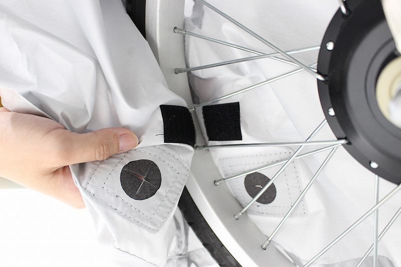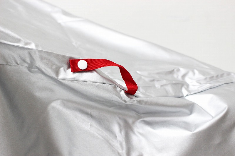 新設計の面ファスナーで、強い風によるめくれ上がりを防止。