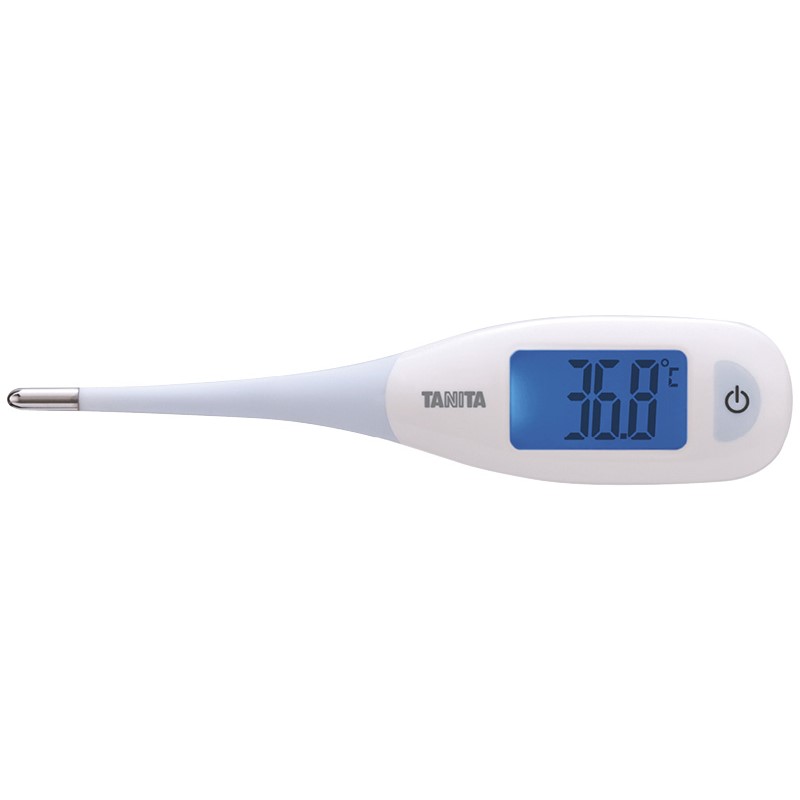 見やすい大型表示とバックライト 文字高約14mmの大型表示。 暗くても見やすいバックライトを搭載。 おやすみ前の測定や夜中の発熱時に、暗いお部屋でも測定できるので便利です。 やわらかく、曲がる測定部で安心測定 測定部は曲がる素材を使用した「フレキシブル測定部」 脇の真ん中にフィットして正しい測定ができます。 直角に当たっても曲がるので、不意に動いてしまう赤ちゃんの体温測定でも安心です。 測定部は水洗いでき、清潔を保てます ※丸洗いはできません。先端の測定部以外には水がかからないようご注意ください。 ※消毒用アルコールをご使用いただけますが、表示部にかからないようにしてください。 20秒の予測式測定 約20秒で測定できる予測式を採用。 正確な体温をはかることのできるしっかり測定です。 ※20秒経過後は実測式測定に移行します。 前回値メモリー 前回の測定結果を記録。 数値を忘れたり、不意に消してしまっても確認できます。 工具不要の電池交換 硬貨で回すことのできる、コイン式を採用。 手元に工具がなくても電池が交換できます。