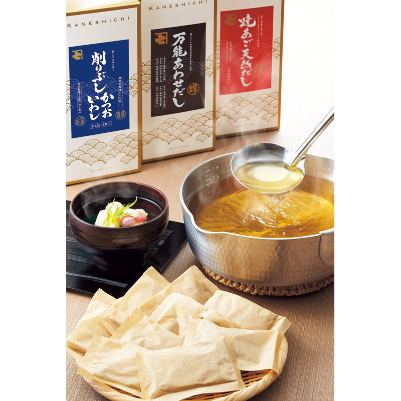 万能あわせだし(8g)×14、焼あご天然だし(5g)×14、かつお削り節(2.5g)×8・いわし削り節(2.5g)×8