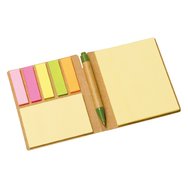 コンパクトなポケットサイズのペン&付箋セットです。再生クラフト紙を使用。