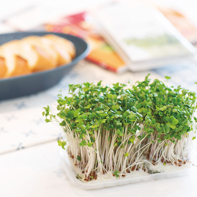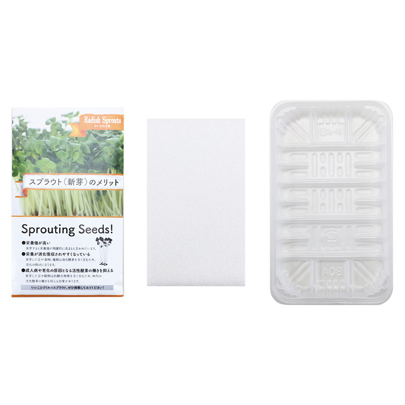 スプラウトとは、発芽直後の植物の新芽のことで、発芽野菜のことを指します。栽培期間は約10日間。かいわれ大根・ブロッコリースプラウトのアソートです。