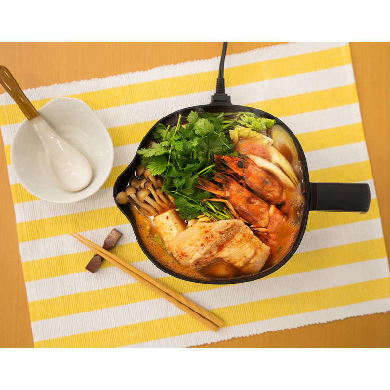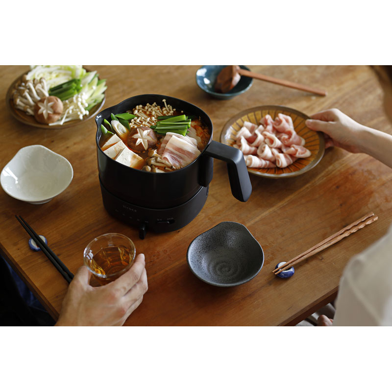 ■40・60・80・100℃の温度調整ができるから、いろいろな料理に ■底面にヒーターや電気部品がないので取り外して丸ごと洗える ■パスタ、そうめん、つけ麺など麺類の調理に役立つ湯切りつき ■鍋底が直接テーブルに触れないから鍋敷きいらずで、そのまま置ける ■1200Wの高火力であっという間にお湯が沸く
