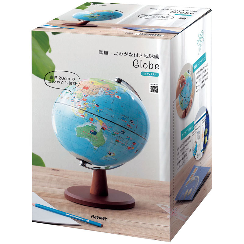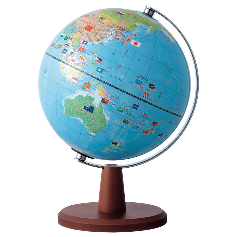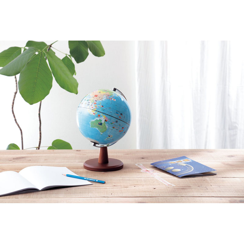 よみがな付の国旗付き地球儀で低学年のお子様にもぴったり。 シンプルながらも緯度のついたフレームでインテリア性も重視した地球儀です。