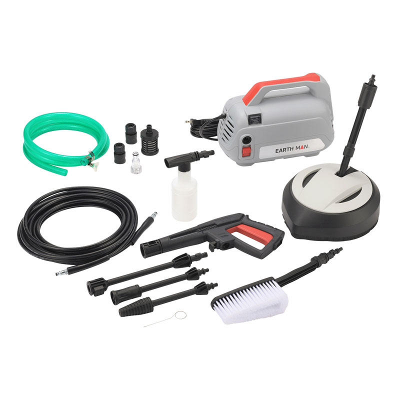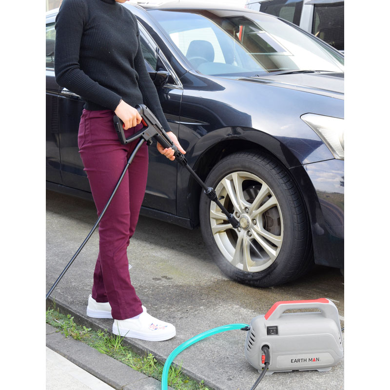本体(4kg)×1(170×320×240mm) (材:ポリプロピレン)、ガン×1、高圧ホース(約10m)×1、給水ホース(約2m)×1、先端ノズル×1、中間継手×1、ターボノズル×1、洗剤用ノズル×1、フロア用ブラシノズル×1、ブラシノズル×1、自給用フィルター×1、給水コネクター接続口×1、ホースバンド×1、ノズルクリーナー×1、ワンタッチジョイント×2