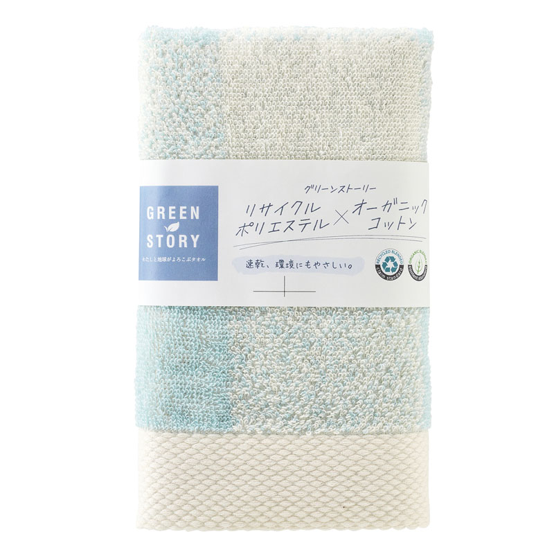 リサイクル素材を使用した環境にやさしいタオルは、速乾性にも優れ使い勝手も抜群です。