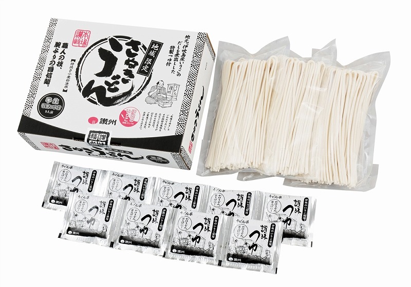 たっぷり9人前を小ロットから出荷対応!ずっしりボリューム満点の讃岐うどんで家族みんなが笑顔になれます。つゆ付きなのですぐ召し上がれる点も高ポイント。お持ち帰り用ポリ袋も付属します。