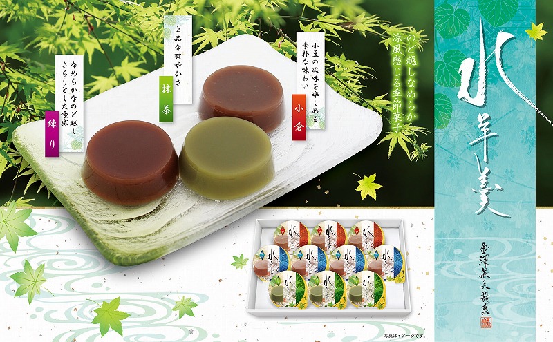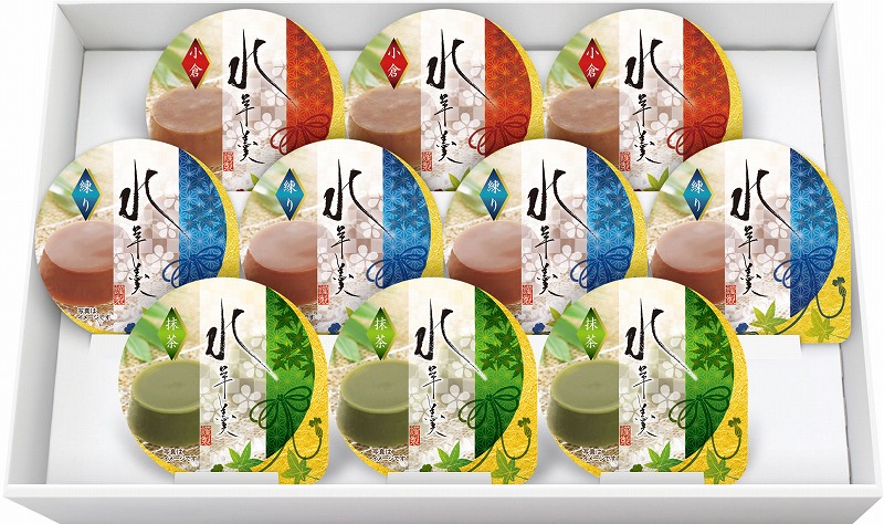 水羊羹練り 60g×4個、水羊羹小倉 60g×3個、水羊羹抹茶 60g×3個