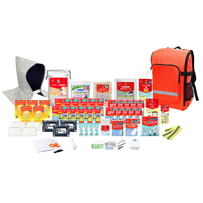 ●セット内容:1)大きく開くdeリュック、2)リュック型de給水袋6L、3)冷熱遮断アルミシト、4)コンパクトあったかフリス、5)あんしんトイレポンチョ(ポチ付)、6)レスキュ簡易頭巾、7)スマホ対応ダイナモFMラジオLEDライト(※?)、8)800ルメンdeランタン(単1電池×3本使用別売)、9)10)11)12)13)14)15)16)17)18)抗菌消臭・簡易トイレ×10、19)20)21)22)23)24)25)26)27)28)携帯用ミニトイレ×10、29)30)31)32)33)携帯おかん器×5、34)新反射安全タスキ、35)4層!静音アルミポンチョ、36)4層!静音アルミ寝袋、37)4層!静音アルミシト、38)レインポンチョホワイト、39)40)41)42)除菌ジェル×4、43)44)45)防災用ウェットティッシュ(20枚入)×3、46)47)48)49)ポケットティッシュ×4、50)軍手、51)ロプ、52)笛、53)タオル、54)絆創膏5枚、55)綿棒10P、56)コットンパフ3枚、57)ワンタッチ包帯、58)爪切り、59)毛抜き、60)ハサミ(※?)携帯電話充電機能はスマトフォン対応可(一部未対応機種あり)。スマトフォンのケブルは付属していません。