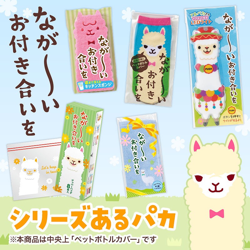 ながーいお付き合いを アルパカさんペットボトルカバー