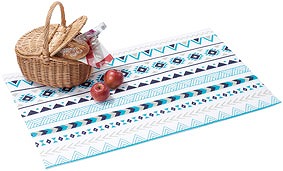 爽やかなアウトドアパターンをあしらった ふかふかな厚みのあるレジャーシート。 持ち運びに便利な透明バッグは名入れが可能です。