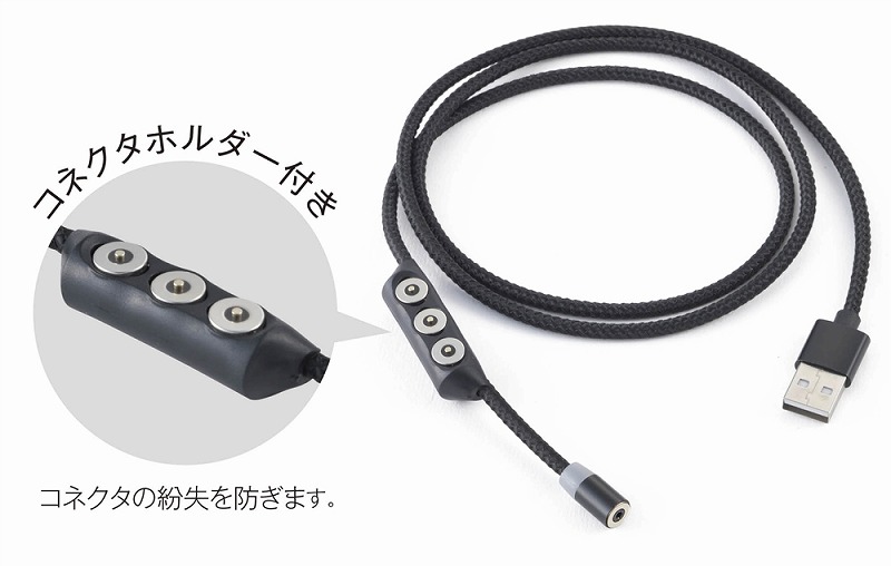 [セット内容] マグネット式ケーブル・micro USBコネクタ・Lightningコネクタ・USB Type-Cコネクタ・コネクタホルダー