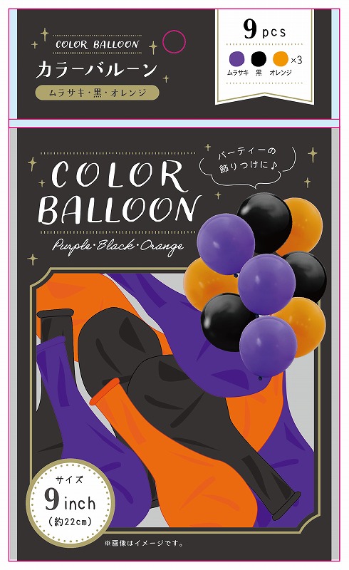 カラーバルーン 9個入(むらさき、オレンジ、黒)