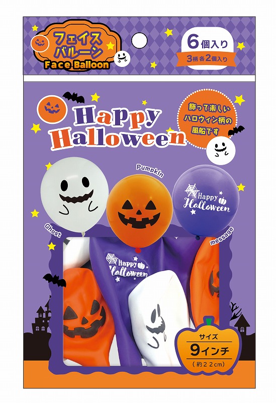 9インチの風船にハロウィンモチーフのデザインを入れて各2個計6個のセット