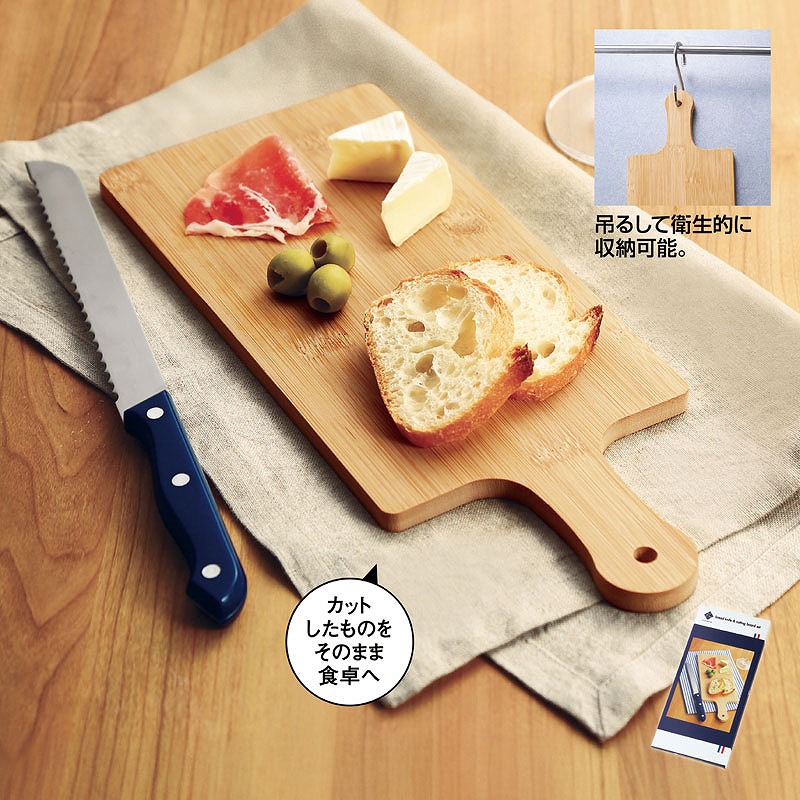 カッティングボード:竹 ブレッドナイフ:ステンレス鋼、ポリプロピレン