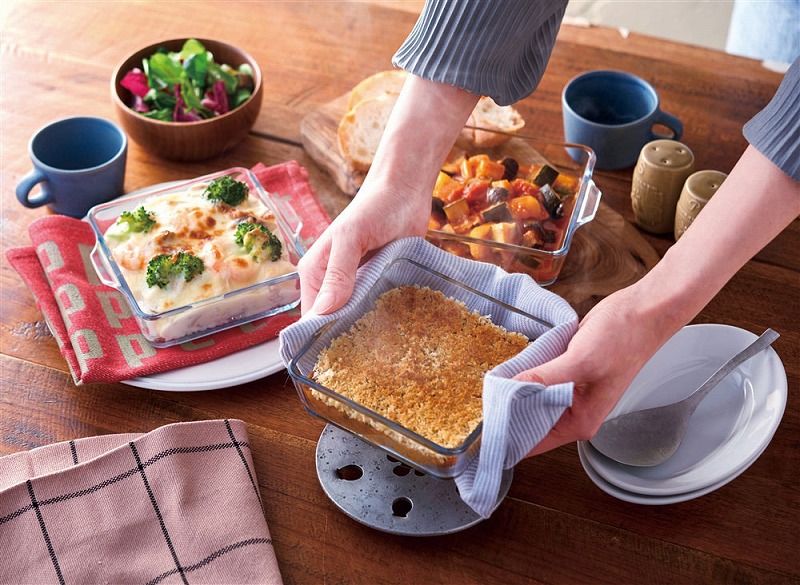 しっかりこんがり!レンジはもちろん、オーブン料理でも使える食材が見える人気のガラス製ベイクウェア