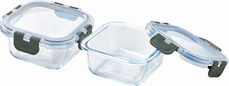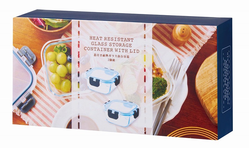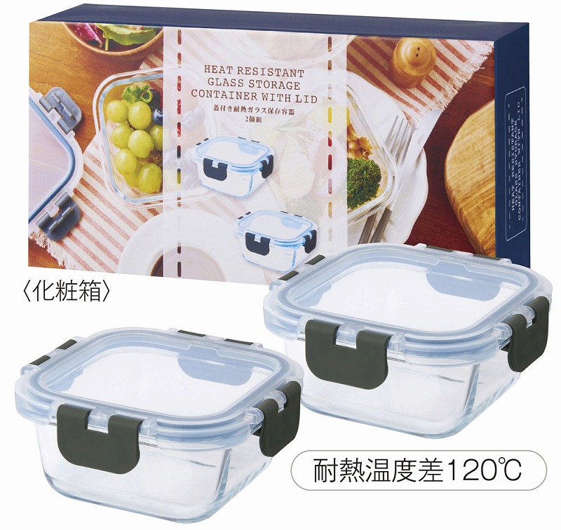 ”販促ノベルティ・記念品・イベントに!” 『蓋付き耐熱ガラス保存容器2個組』