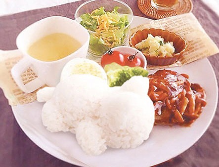 ごはん約200gをつめてひっくり返すだけで、ふっくらかわいいネコ型に盛れます。ごはんをつめるとき、容器が水平に自立するので、置いたままで詰められます。お好みで目や模様をつけたり、カレーやオムライスに使ったり、ワンプレートでネコ型ごはんに魚をそえたりして楽しめます。