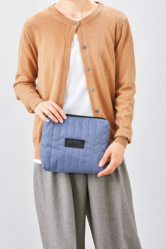 A5サイズノートが入る大容量スクエア型ポーチ。 かさばる道具や文房具、ガジェットの収納に便利。 バッグインバッグとしても使用できます。