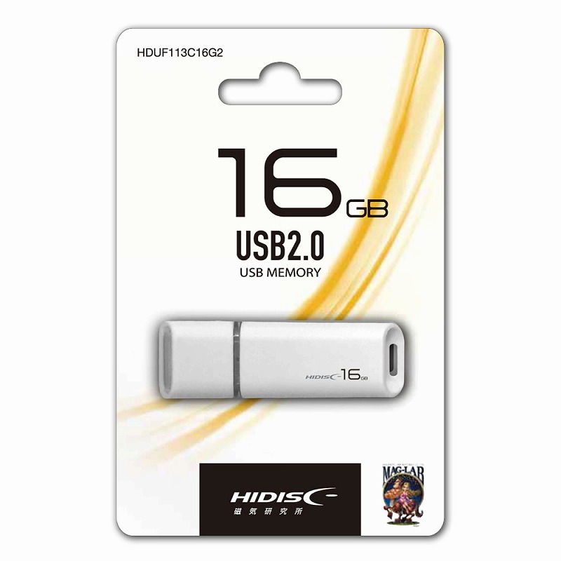 HIDISC USB 2.0 フラッシュドライブ 16GB 白 キャップ式 HDUF113C16G2